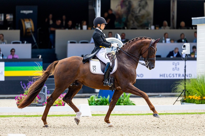 Rider and owner Fiona Bigwood is over the moon with her double world champion. “I feel so lucky to have Quinn, she is so good my only task is to pilot her around the test. Her focus on me is incredible. I have never done anything like this and I have learned a lot the last few days, because this is quite different from Grand Prix.” Fiona purchased the mare in the autumn of 2023 and last spring she was campaigned at the shows by Carl Hester. “Her character is her best quality. She adores people and is so eager to please. Chestnut mare may have a reputation, but she is simply amazing and has the best personality.” The combination placed just outside the top three in the qualification, but now soared the rankings to the top position. “It is a completely different way of riding compared to a ‘regular’ dressage test, but we gave it our all and it all worked out.”