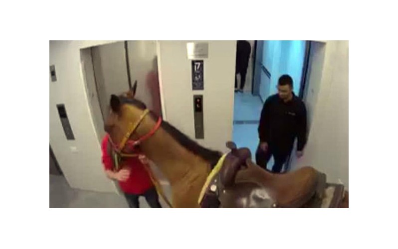 Cavalo entra em elevador de prédio de luxo em Israel (VÍDEO)