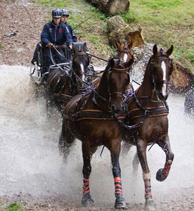 International course designer Arjan Brink from The Netherlands, who was also responsible for the course at the 2002 World Equestrian Games in Jerez de la Frontera, had designed a challenging course together with his Dutch assistant Johan Jacobs. Eight wonderful obstacles, each with their own theme such as the pigeon house, old Dutch houses at the harbour, the hay stacks, two spectacular water splashes and even an obstacle with a tented roof, were a joy to look at and received many compliments from competitors, officials and spectators. The rain showers on the dressage days had made the grounds wet, but due to the intensive ground preparations prior to the competition, the footage remained in a good condition from the first to the last competitor. The weather gods were sympathetic on the marathon day. There was sun, but not too much, and there was an occasional breeze. The weather altogether was perfect for the horses, drivers and driving fans.