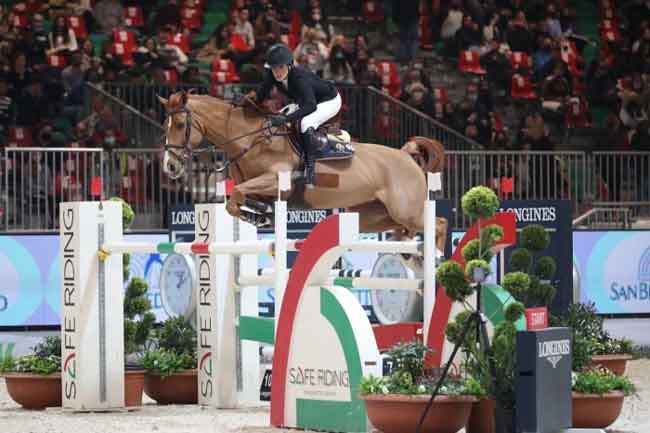 Going 34th in the big field of 61 starters, she showed the rest a clean pair of heels when racing through the finish with her 14-year-old chestnut mare in 30.39 seconds. This left her well clear of runner-up Filippo Marc Bologni who broke the beam in 30.95 seconds with his ever-reliable 17-year-old stallion Quidich de la Chavee while Bologni’s Italian compatriot, Luca Marziani, finished third when fractionally slower with Don’t Worry B.