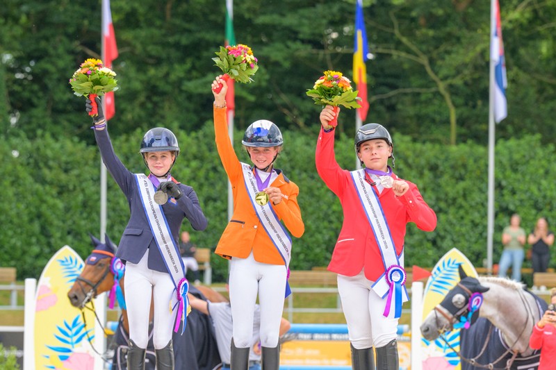 Lieselot Kooremans is the new individual European champion in the Children category. The 14-year-old Dutch rider and her 12-year-old mare Nini van HD remained clear throughout all six rounds of the U14 competitions, thus securing the gold medal. Silver went to Eleonora Ljungman from Great Britain, while bronze was awarded to Swiss rider Noah Philips-De Vuyst.