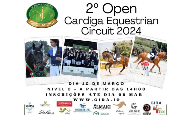 Já estão abertas as inscrições na plataforma www.gira.io para o 2º OPEN que se realizará no domingo, dia 10 de Março, a partir das 14h00, nas instalações da Academia Equestre J Cardiga, em Barcarena, Oeiras.
