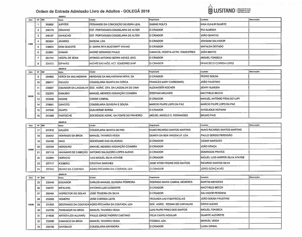 Aproxima-se a primeira concentração de 2018 para a Admissão de Machos ao Livro de Reprodutores da Raça Lusitana que vai decorrer no próximo sábado, dia 27 de Janeiro, às 09h00 no Picadeiro da Lusitanus, na Golegã.