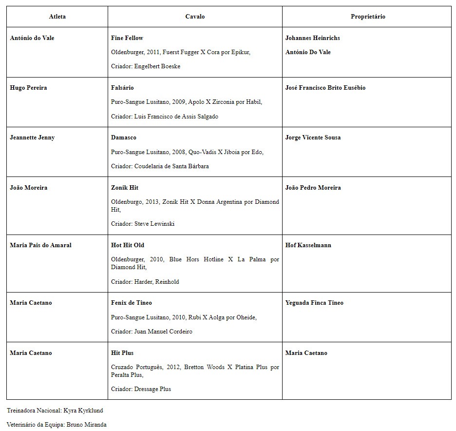 A Federação Equestre Portuguesa informa os atletas pré-convocados para representar Portugal no Campeonato da Europa de Dressage (Séniores), que decorrerá em Riesenbeck – Alemanha – de 04 a 10 de Setembro de 2023: