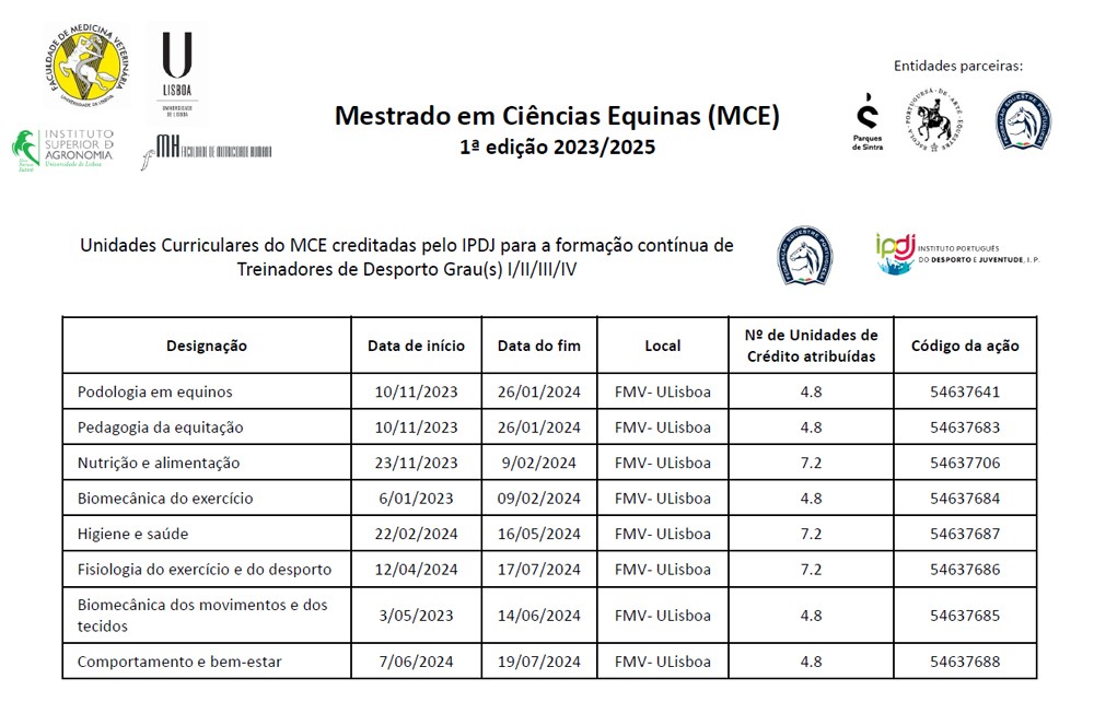 Nota: A frequência de Unidades Curriculares Isoladas do Mestrado em Ciências Equinas está sujeita a um número de vagas limitado.