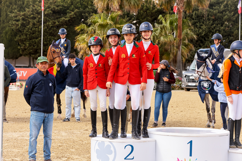No momento decisivo, os nossos cavaleiros mostraram nervos de aço. Tomás Sabino Gonçalves com ‘Charlie XVIII’ e María Inés Sequeiros com ‘Ballerina Girl DVO Z’ concluíram os seus percursos sem faltas, consolidando a posição da equipa. Matilde Rodrigues, que até então tinha realizado um percurso irrepreensível com ‘Jikaribanta’ (zero pontos na primeira e segunda mão), enfrentou dificuldades no desempate e terminou com 8 pontos, sem, no entanto, comprometer o extraordinário desempenho coletivo da equipa.