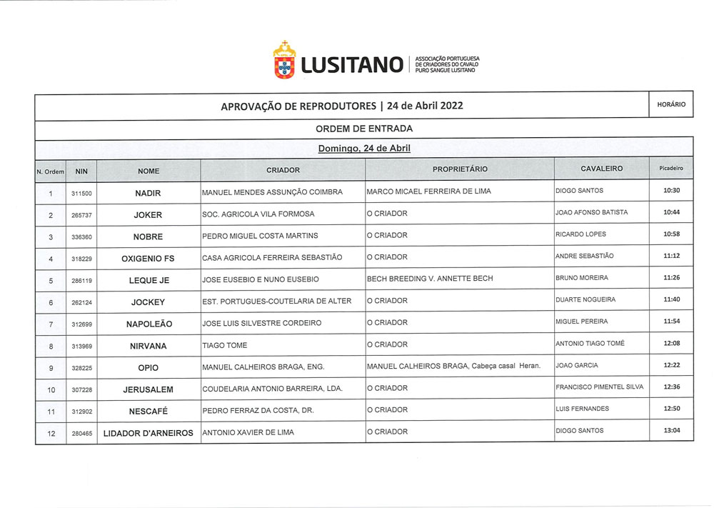 Aprovação de Garanhões 2022 – Coudelaria de Alter