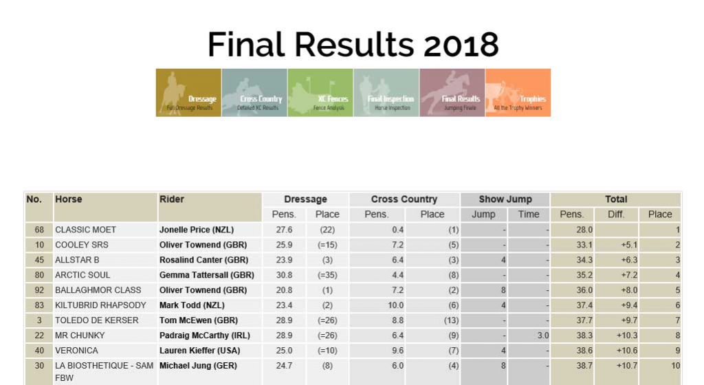 Apesar de Classic Moet de 15 anos ter roçado as varas na prova de saltos, estas mantiveram-se nos apoios. “Tive a sorte do meu lado”, disse Jonelle. “A minha égua merecia ganhar, apesar da sorte também jogar a nosso favor “, afirmou a olímpica Jonelle, de 37 anos.