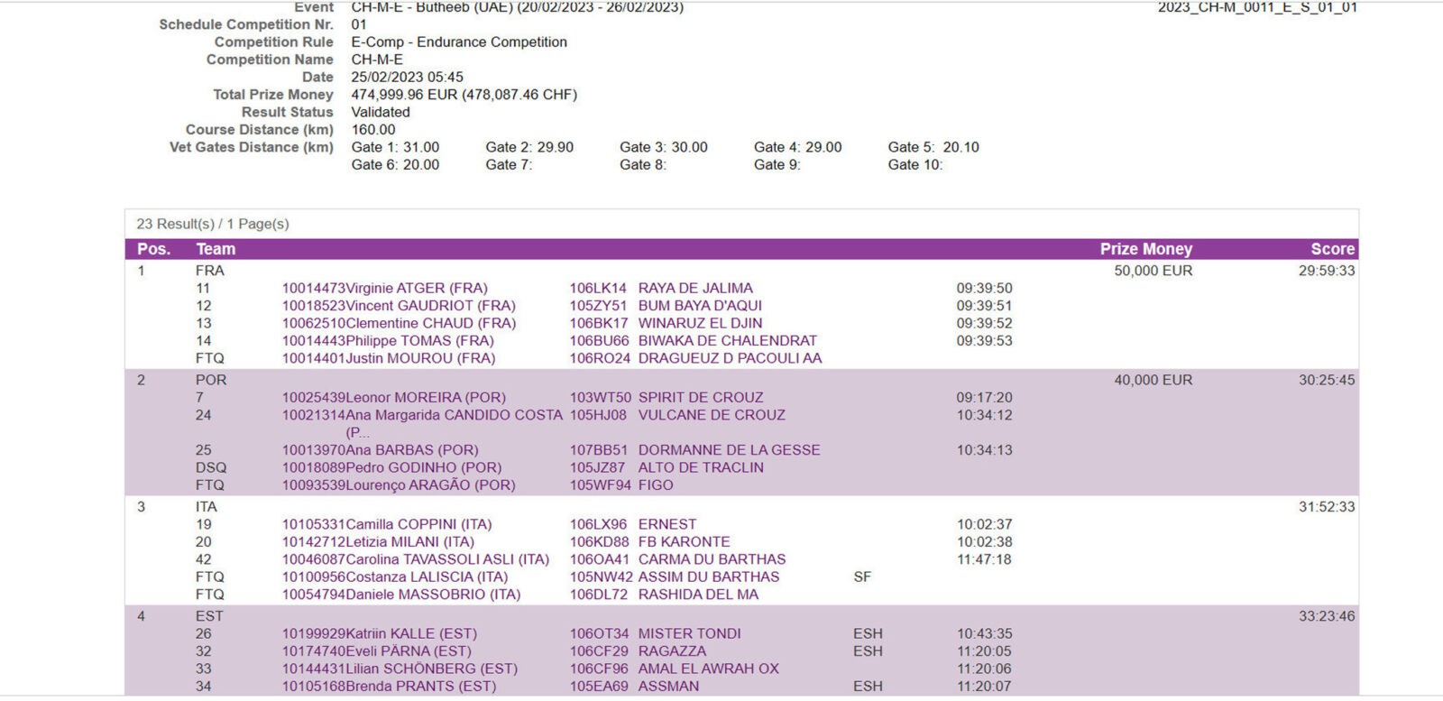 O Bahrein perdeu a medalha de ouro por equipas no Campeonato Mundial de Endurance 2022 para a França, devido a um teste positivo para esteroides. Portugal passa a vice-campeão do Mundo e a Itália fica com o bronze.