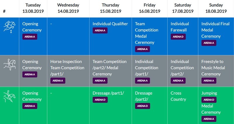 O concurso começa no dia 14 de Agosto no hipódromo de Morawa, perto de Strzegom, com uma cerimónia de abertura na terça-feira (13 Ago) com a apresentação de todos os países participantes. Iremos conhecer os primeiros vencedores na quinta-feira, dia 15 de Agosto.