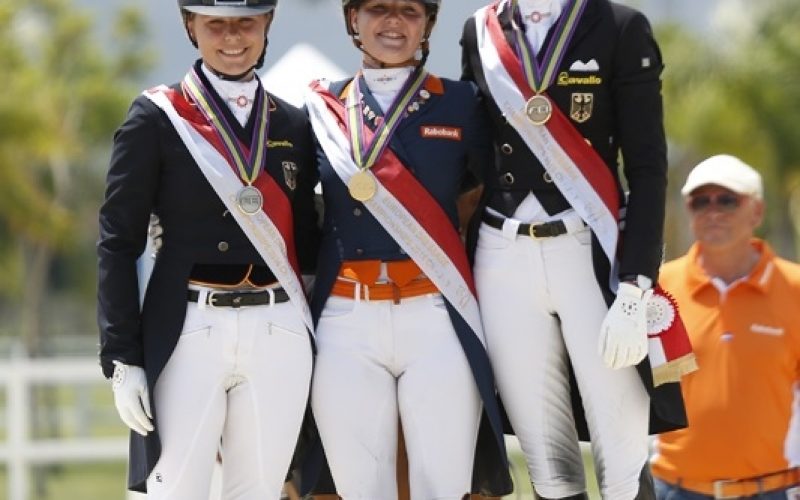 Em Jovens Cavaleiros a holandesa Jeanine Nieuwenhuis conquistou o ouro com TC Athene alcançando a excelente média de 78,974%. Alemanha ocupou os restantes quatro lugares, conquistando a medalha de prata Jil-Marielle Becks com Damon’s Satelite (76,763%) e Leonie Ritcher o bronze com Babylon 26 (72,842%).