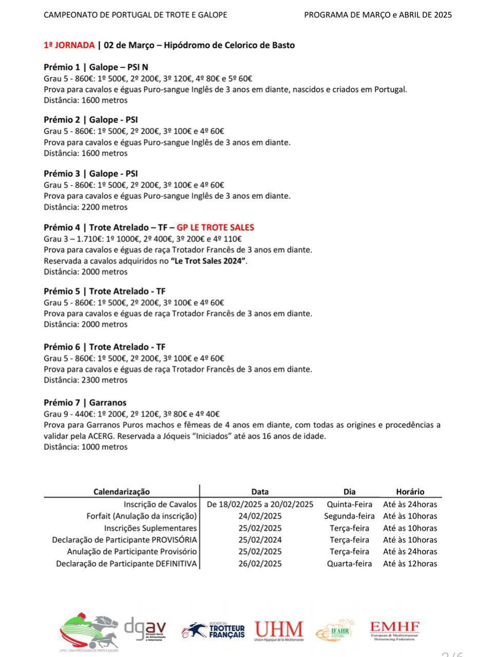 A segunda jornada decorrerá a 16 de março no Hipódromo de Ponte da Barca, enquanto a terceira jornada terá lugar no Hipódromo Municipal da Maia, no dia 6 de abril.