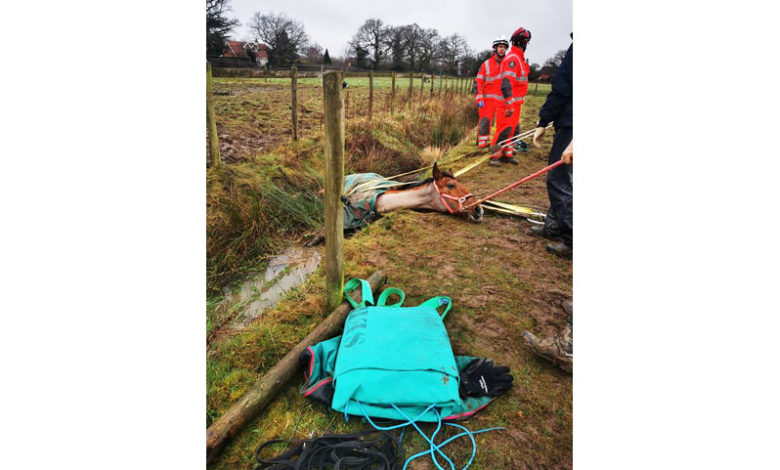O incidente aconteceu, esta terça-feira, em West Midlands, no Reino Unido, quando o cavalo ‘Jack’ teve o azar de cair numa vala cheia de água.