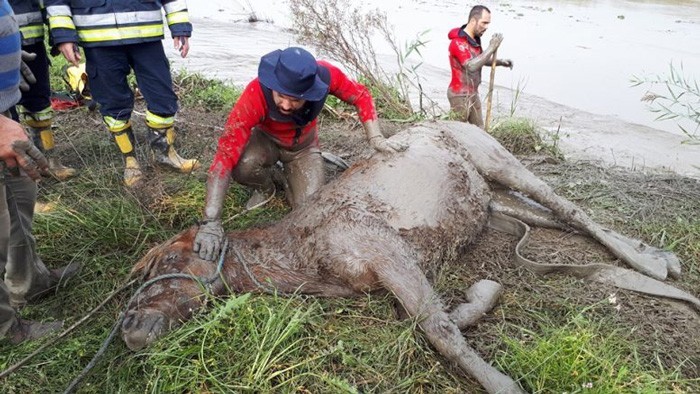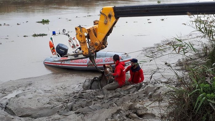 “Por terra e por água, homens no lodo, enterrados até onde teve que ser, substituições por exaustão, para garantir que o cavalo, já sem forças para lutar pela sua sobrevivência, se mantinha com a cabeça fora da lama”, relembram os bombeiros.