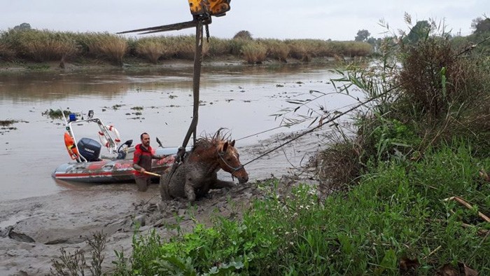 Um cavalo ficou preso nas margens do rio Sorraia esta quarta-feira. O animal caiu no rio e foi arrastado pela corrente durante cerca de dois quilómetros até ficar atolado no lodo das margens da maré baixa, no entanto, acabou por ser salvo pelos Bombeiros Voluntários de Samora Correia.