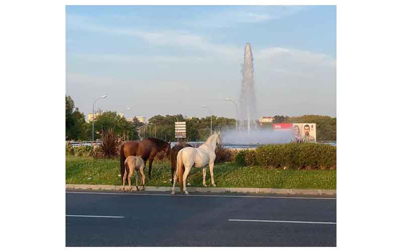 Os animais atravessaram a estrada e aproveitaram para pastar na praça de S. Silvestre, uma movimentada rotunda junto à estação de Metropolitano Amadora-Este.