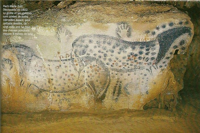 As criaturas pintadas nas paredes da gruta de Pech Merle (em baixo), em França, remontam a 23 mil a.C. e representam equídeos que vagueavam pela Europa há milénios, mas estão por explicar as manchas no seu dorso.