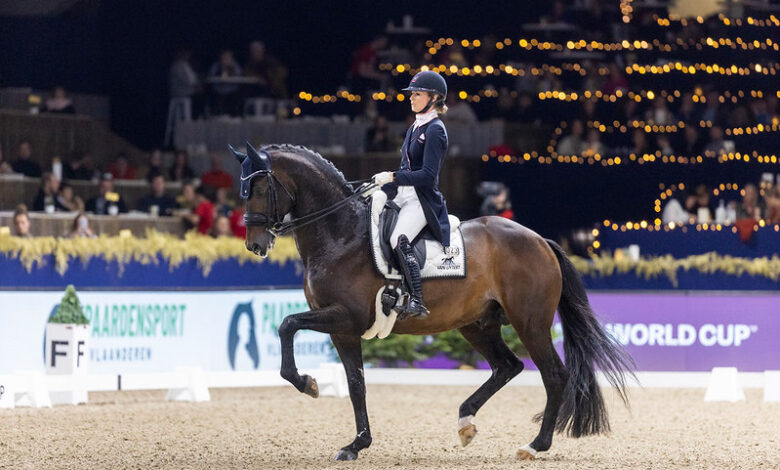 A holandesa Dinja van Liere montando o garanhão KWPN Hermes NOP de 10 anos, venceu esta quinta-feira a sexta etapa da Taça do Mundo de Dressage 2022/2023 da Liga da Europa Ocidental em Mechelen, Bélgica.