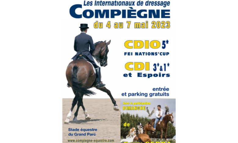 Com quatro dos dez melhores cavaleiros do mundo, incluindo a número 1 do ranking e campeã mundial, a britânica Charlotte Fry, o 12º Internationaux de Dressage de Compiègne (de 4 a 7 de Maio) oferece uma participação de excelente nível. Estão inscritas 10 equipas na Taça das Nações FEI, incluindo Portugal, que será representado por Maria Caetano (Hit Plus e Fénix de Tineo), João Pedro Moreira (Zonik Hit) e Hugo Pereira (Falsário LS). A comissão organizadora promete um evento de alto nível, num encontro que a França enfrenta com ambições muito reais.