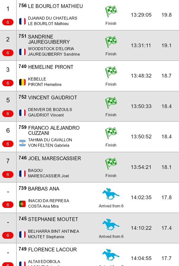 A prova foi ganha pelo francês Mathieu le Bourlot (Djawad du Chatelars), ficando a sua compatriota Sandrine Jaureguiberry (Woodstock d’Eloria) em 2.º lugar e Hemeline Piront (Kebelle), da Bélgica, na 3.ª posição.