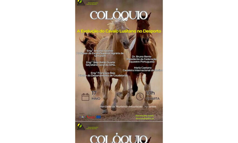 O Colóquio “A Evolução do Cavalo Lusitano no Desporto”, organizado pela Escola Profissional de Desenvolvimento Rural de Abrantes, vai ter lugar no próximo dia 17 de Maio, a partir das 10h00 na Herdade da Murteira em Abrantes.