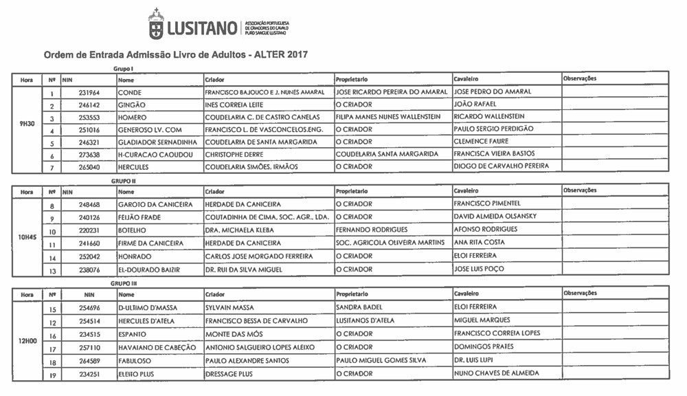 Lista de Cavalos candidatos a Reprodutores da Raça Lusitana