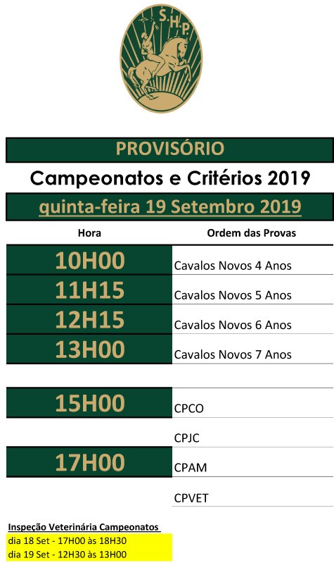 Com a participação de 119 conjuntos, começam hoje na Sociedade Hípica Portuguesa em Lisboa, as primeira classificativas dos Campeonatos de Portugal de Cavaleiros de Obstáculos nas categorias de Seniores, Jovens Cavaleiros, Amadores, Veteranos bem como os Critérios para Cavalos de 4, 5, 6 e 7 anos.