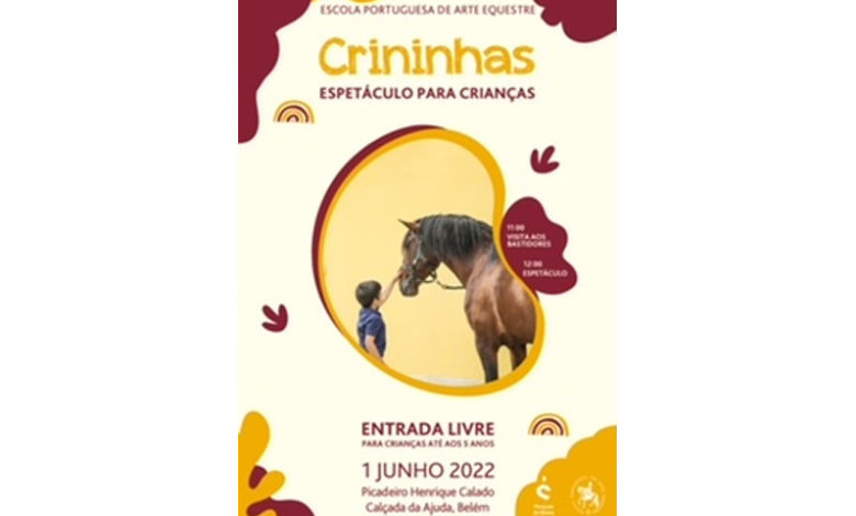 “Crininhas” é um espetáculo concebido para dar a conhecer aos mais novos o universo da Alta Escola Equestre Portuguesa. Através da narração de um conto, que tem como protagonista um jovem cavalo que ingressa pela primeira vez na Escola, o público fica a conhecer, de um modo simples, as explicações para os diferentes números, quadros e exercícios que os cavalos e os cavaleiros praticavam no tempo dos reis e das rainhas. Uma maneira descomplicada para dar a conhecer a secular arte equestre portuguesa, ao mesmo tempo que se evocam valores importantes como a família, a amizade, a disciplina, a entreajuda e o espírito de sacrifício.