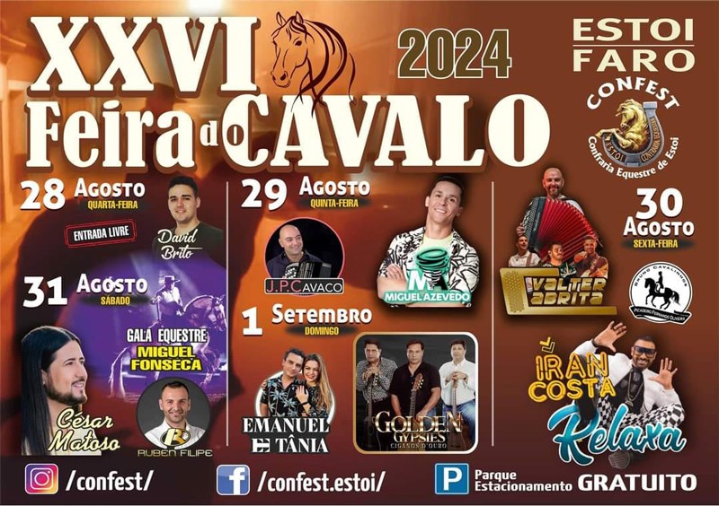Organizada pela Confest, vai realizar-se a “XXVI Feira do Cavalo”, em Estoi – Faro, de 28 de Agosto a 1 de Setembro, acontecimento que atrai milhares de visitantes a Estoi.