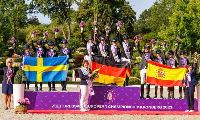 A prova por equipas do escalão Children do Europeu de Dressage, realizada em Kronberg, chegou ao fim neste sábado. A formação portuguesa, composta por Leonor Gonçalves (Monarca do Lis) com a pontuação de 73,950% (20º), Guilherme Broega (Minuto) com 71,117% (, Maria Almeida (Gentil) com 70,017% e Margarida Ramos (Figo das Figueiras) com 67,309%, acumulou um total de 215.084 pontos, terminando em oitavo lugar neste campeonato.