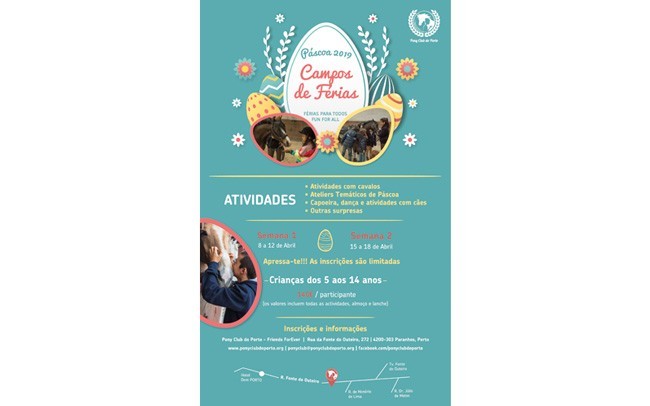 08 a 12 de Abril e de 15 a 18 de Abril, o Pony Club oferece dias de diversão para todas as crianças!