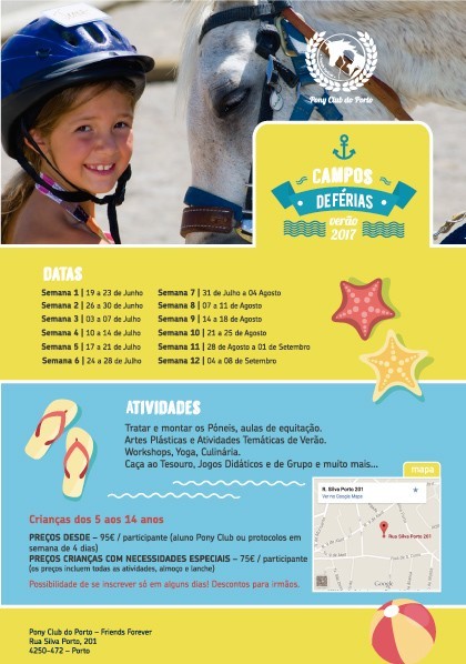 Inscrições e mais informações através do email info@ponyclubdoporto.org, dos telefones 228 318 288 / 926 550 267ou no site www.ponyclubdoporto.org