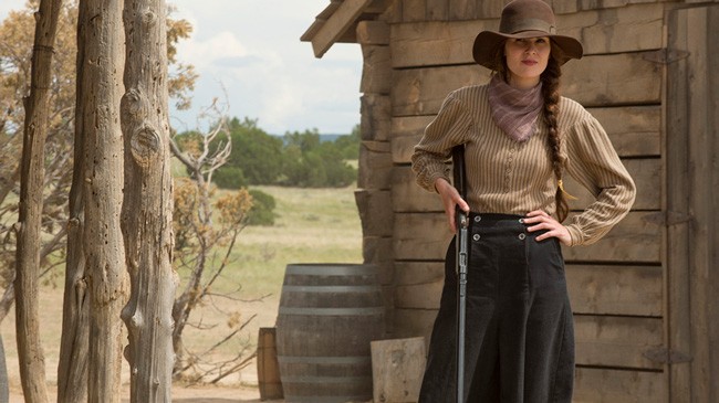 Lenços ao pescoço, chapéus de felpo, vestidos e saias longas, camisas com padrões, sem decotes nem detalhes além dos botões até ao pescoço ou os padrões em tons terra, e muitos cintos (regra geral, em camurça) a demarcar a cintura das mulheres do faroeste. A responsável por tudo isto é Betsy Heimann, figurinista de Pulp Fiction, Reservoir Dogs ou Almost Famous (quem consegue esquecer o sentido de estilo irrepreensível de Kate Hudson enquanto a memorável Penny Lane?).
