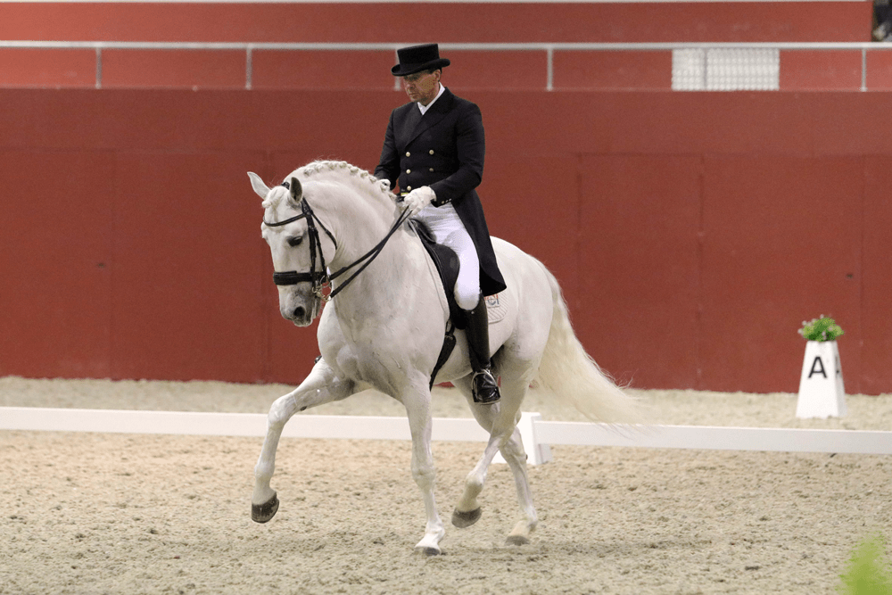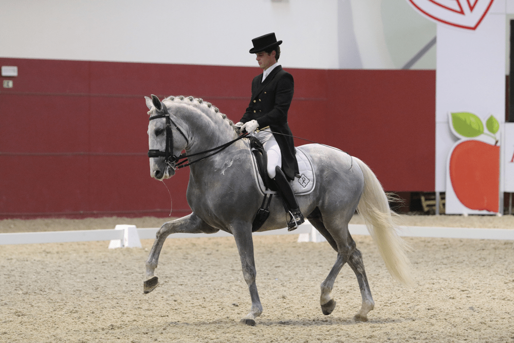 Nos cavalos 6 anos FEI o cavaleiro Hugo Pereira apresentou Gribaldi, alcançando (7.72%) no sábado e no domingo.