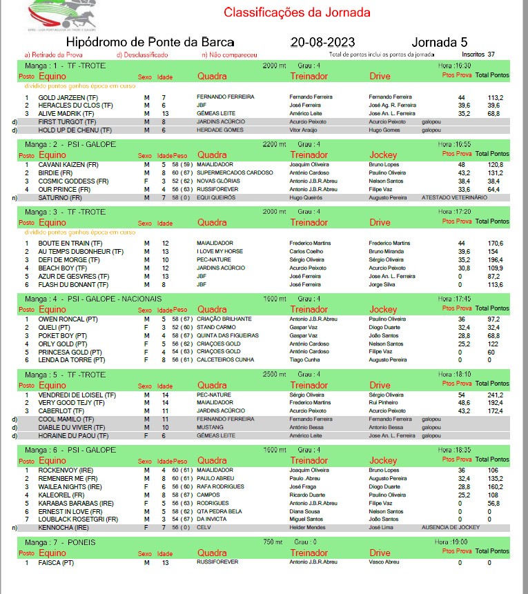 O Hipódromo de Ponte da Barca em Lordelo, recebeu no passado domingo (20) a 5ª jornada do Campeonato Nacional Campeonato Nacional da Liga Portuguesa de Trote e Galope 2023.