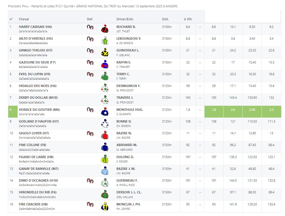 Dezesseis trotadores, distribuídos por três escalões, participam na décima etapa do Grand National do Trot esta quarta-feira, no Hipódromo de Angers, França.