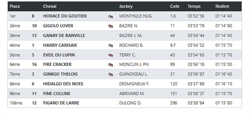 Na ausência de «Gaspar d’Angis» (Quaro), «Horace du Goutier» (Ready Cash) teve o caminho livre para assumir a liderança do Grand National du Trot em Angers esta quarta-feira.