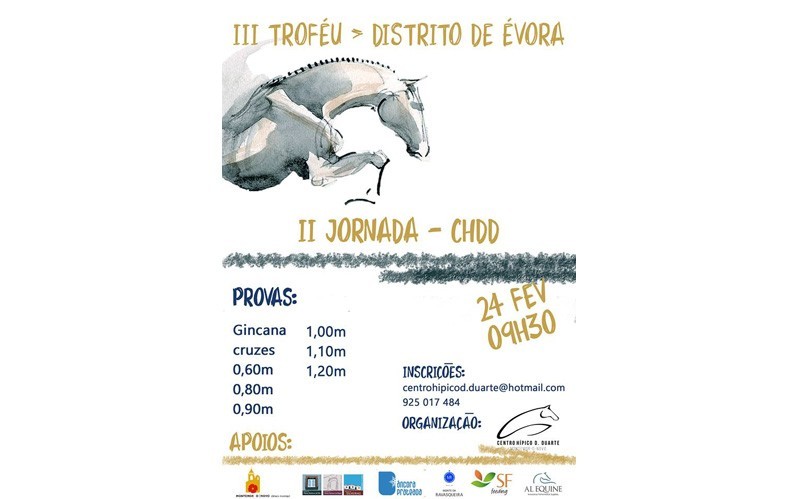 O Centro Hípico D. Duarte organiza e recebe a II jornada do de Saltos de Obstáculos do Distrito de Évora.