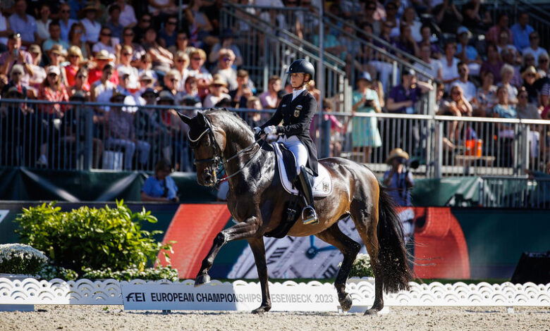A alemã Jessica von Bredow-Werndl com a égua de 16 anos TSF Dalera BB, conquistou a sua segunda medalha de ouro individual da semana, ao vencer o Grande Prémio Freestyle, neste domingo no Campeonato da Europa de Dressage FEI 2023, em Riesenbeck (Alemanha).