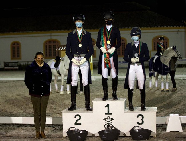 Uma consistente prestação com o garanhão Lusitano, Equador MVL, no Grande Prémio (77,348%), GP Especial (79,042%) e na Kür (83,875%), deram a João Torrão, de 27 anos, a sua primeira vitória no campeonato nacional de ensino, em Alter do Chão. Medalha de prata para o olímpico, Daniel Pinto com Santurion de Massa, (GP 74,587%, G.P. Especial 76,362% e GPFS 80,150%) e o bronze para Vasco Mira Godinho com Garrett.