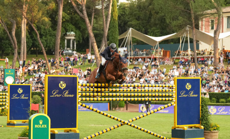 O lendário cavaleiro de saltos, John Whitaker e o italiano Emilio Biocchi venceram em conjunto as “6 Barras” no CSIO Roma na Piazza di Siena, saltando 1,95m.