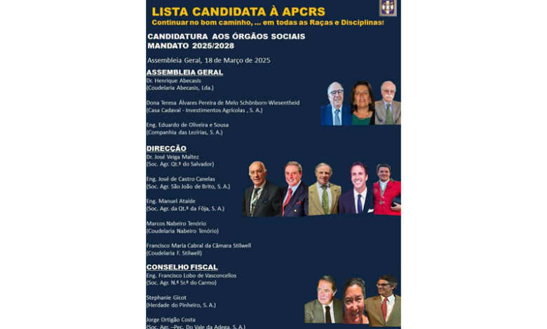 Uma lista abrangente, composta por integrantes de todos os Stud Books e de todas as disciplinas equestres, incluindo Saltos de Obstáculos, Dressage, Atrelagem, CCE, entre outras. Um feito conquistado pela APCRS (Associação Portuguesa de Criadores de Raças Selectas).