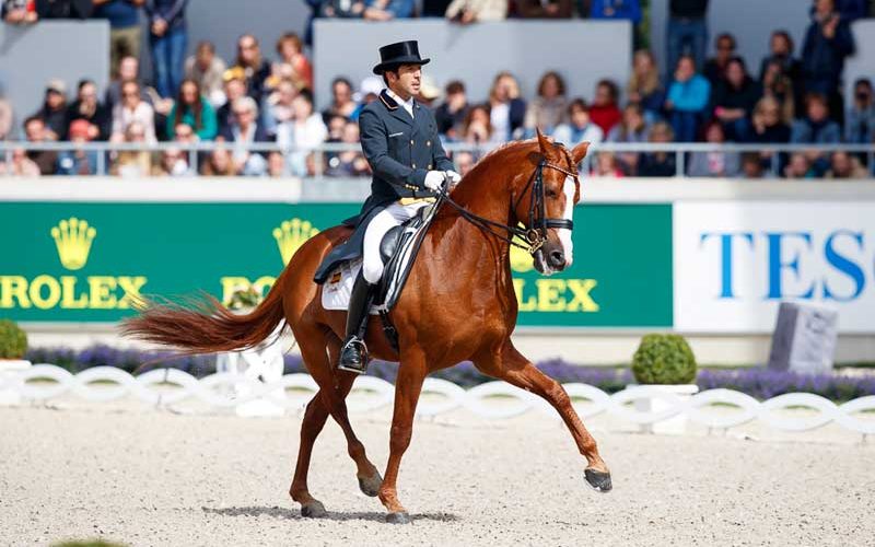 A cerca de 4 meses dos Jogos Equestres Mundiais, o cavalo Lusitano «Alcaide» (Lobito x Paloma por Novilheiro) do criador Sociedade Agricola Oliveira Martins, montado pelo olímpico espanhol, Claudio Castilla Ruiz, brilhou no recente CDI3* de Segóvia, (10 a 12/05) vencendo o Grande Prémio e G.P. Freestyle.