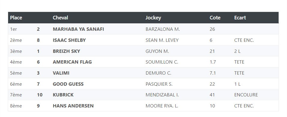 Montado por Mickaël Barzalona, um dos melhores jóqueis franceses, o poldro Marhaba Ya Sanafi (IRE), treinado em Chantilly pelo profissional alemão, Andreas Schutz venceu no domingo (14) a Poule d’Essai des Poulains em Paris-Longchamp.