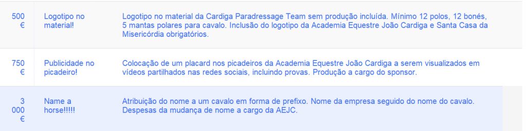 Importa referir que os atletas já contam alguns apoios, nomeadamente, do comité paralímpico, que apoia dois atletas, mas os outros não. Por outro lado, apesar da enorme importância de todos os apoiantes, as verbas exigidas para deslocação de cavalos, equipa, estadias e alojamentos, são demasiado elevadas, daí a necessidade de encontrar novas formas financiamento.