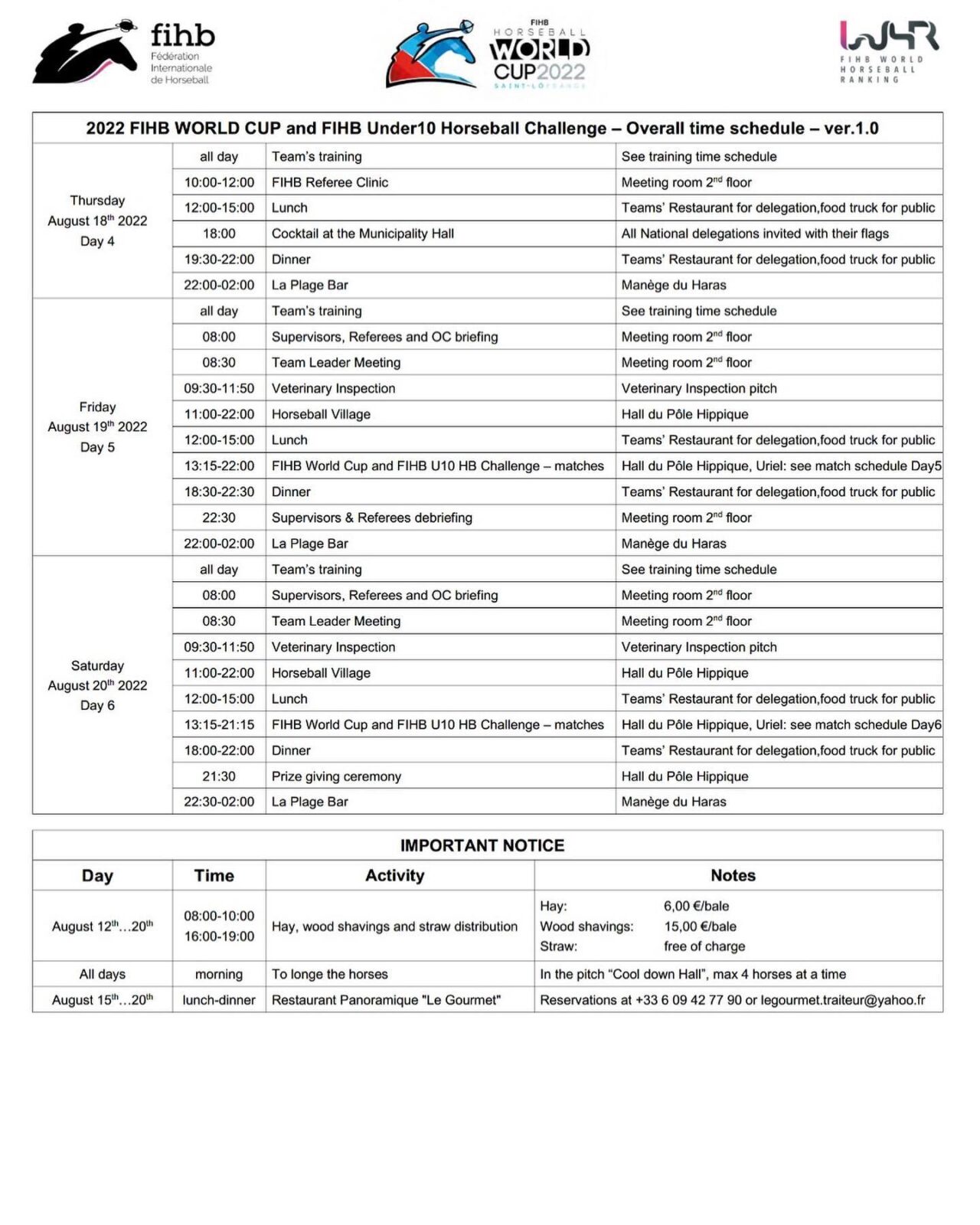 Após o cancelamento da Horseball World Cup em 2021, a FIHB juntamente com a Comissão Organizadora do Normandie Horse Show em Saint-Lô, França, recebem a Horseball World Cup 2022 entre 15 e 20 de Agosto.