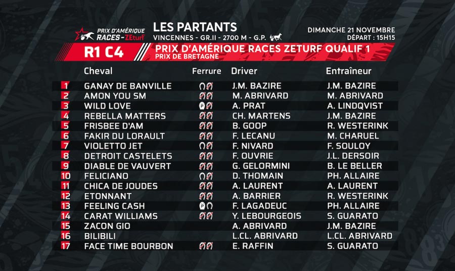 Realiza-se no domingo (21) a prova G2 Prix de Bretagne (2700m), primeira qualificativa para o Prix d’Amérique (2700m) no Hipódromo de Vincennes, a leste de Paris.