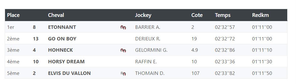 «Go On Boy» foi a outra boa surpresa da corrida. Este cavalo fez uma excelente reta final para garantir o segundo lugar à frente de «Hohneck», que sempre esteve entre os primeiros. «Horsy Dream» também deixou uma boa impressão ao terminar em quarto lugar. Segundo colocado nas duas últimas edições, «Etonnant» finalmente foi recompensado!