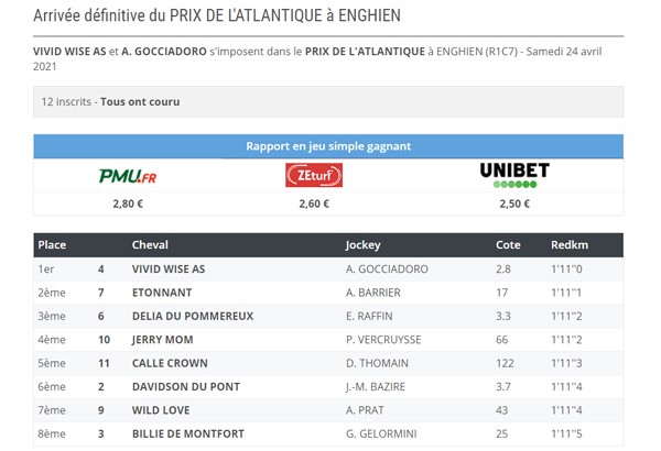 Decorreu no passado sábado o Prix de l’Atlantique (Grupo 1) no Hipódromo de Enghein localizado em Soisy-sous-Montmorency (França) e no qual alinharam doze excelentes trotadores que disputaram um percurso de 2.150 metros com uma partida lançada por carro.