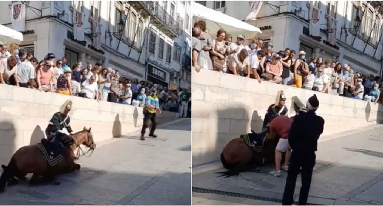 Um dos quatro cavalos da GNR que, tradicionalmente, abrem a procissão da Rainha Santa, neste domingo, escorregou e acabou por cair, junto à Igreja de Santa Cruz, em Coimbra. A situação motivou uma onda de indignação dos fiéis que estavam na Praça 8 de Maio a assistir à missa solene em louvor de Santa Isabel de Portugal.